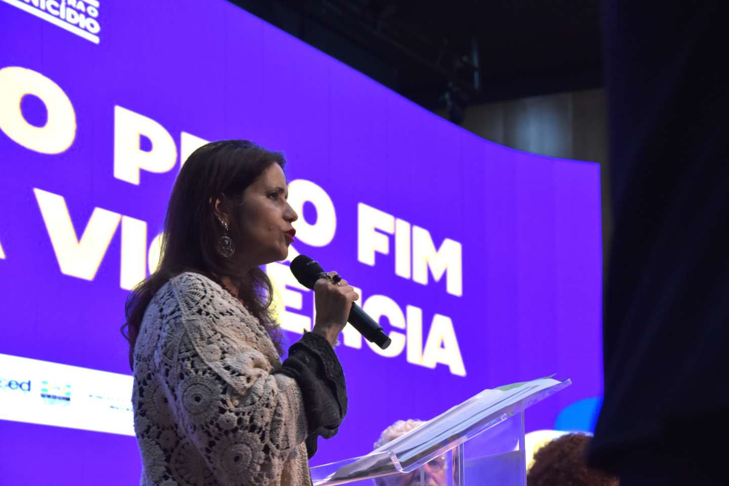 A vice-presidente de Relações Institucionais do Conif, Veruska Machado, durante a cerimônia "Educação pelo Fim da Violência".