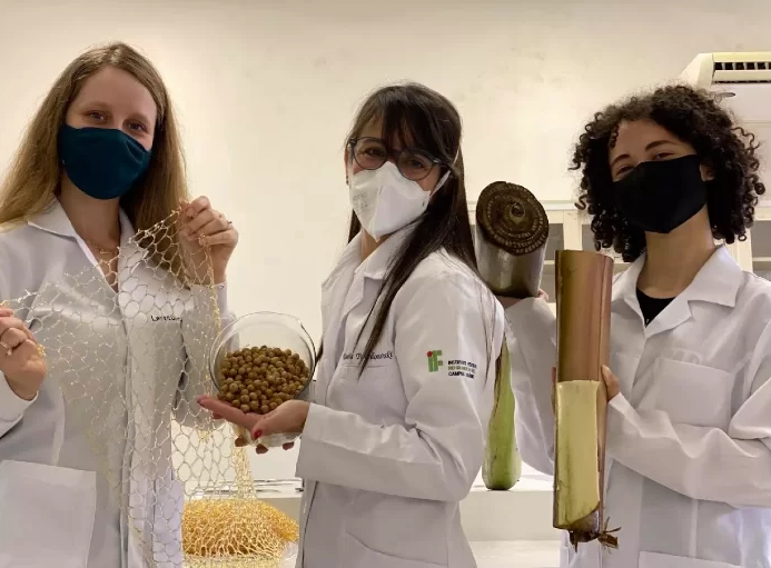 Os materiais absorventes foram produzidos a partir das fibras da palmeira juçara e do pseudocaule da bananeira. A partir de resíduos da indústria nutracêutica, como cápsulas de medicamentos, a equipe criou um biofilme que envolve a parte interna do absorvente, inserido em suportes confeccionados com sobras de tecido.